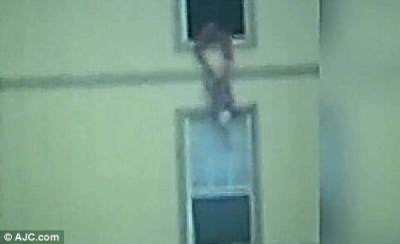 بالصور ..امراةحاصرتها النيران فألقت بطفليها من النافذة إلى الجيران