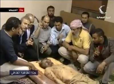 فيديو قوي ...للثوار يخاطبون جثة القذافي ويبشرونه بالنار!!