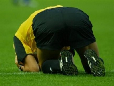 مضحك حكم “سكران” بمباراة كرة قدم يطرد اللاعبين دون سبب ويسقط على الارض.. فيديو