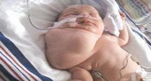 .إزالة ورم من رقبة طفلة بحجم رأسها