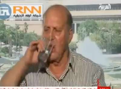 شاهدوا بالفيديو .. مؤيد للاسد يشرب الماء في نهار رمضان على شاشة العربية!!!!