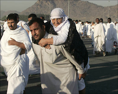 شاهدوا بالفيديو رجل يحج بأمه على ظهره - مؤثر جدا
