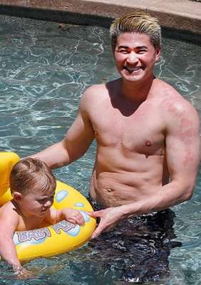 اول رجل حامل في العالم يظهر عضلاته بعد انجاب 3 اطفال