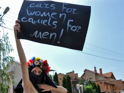 لنصرة السعوديات ....نساء عاريات الصدور يرفعن شعار “السيارات للنساء والإبل للرجال”