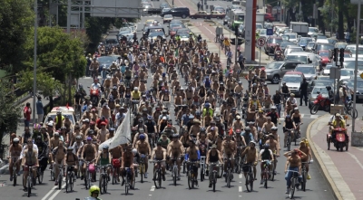 تظاهرة عارية على متن الدراجات الهوائية في مدينة بريطانية