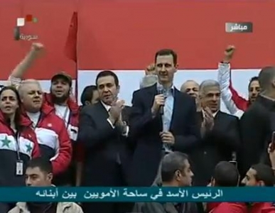 الأسد على غرار القذافي "إلى الأمام" .. والحشود يردون "شبيحة لعيونك".. فيديو