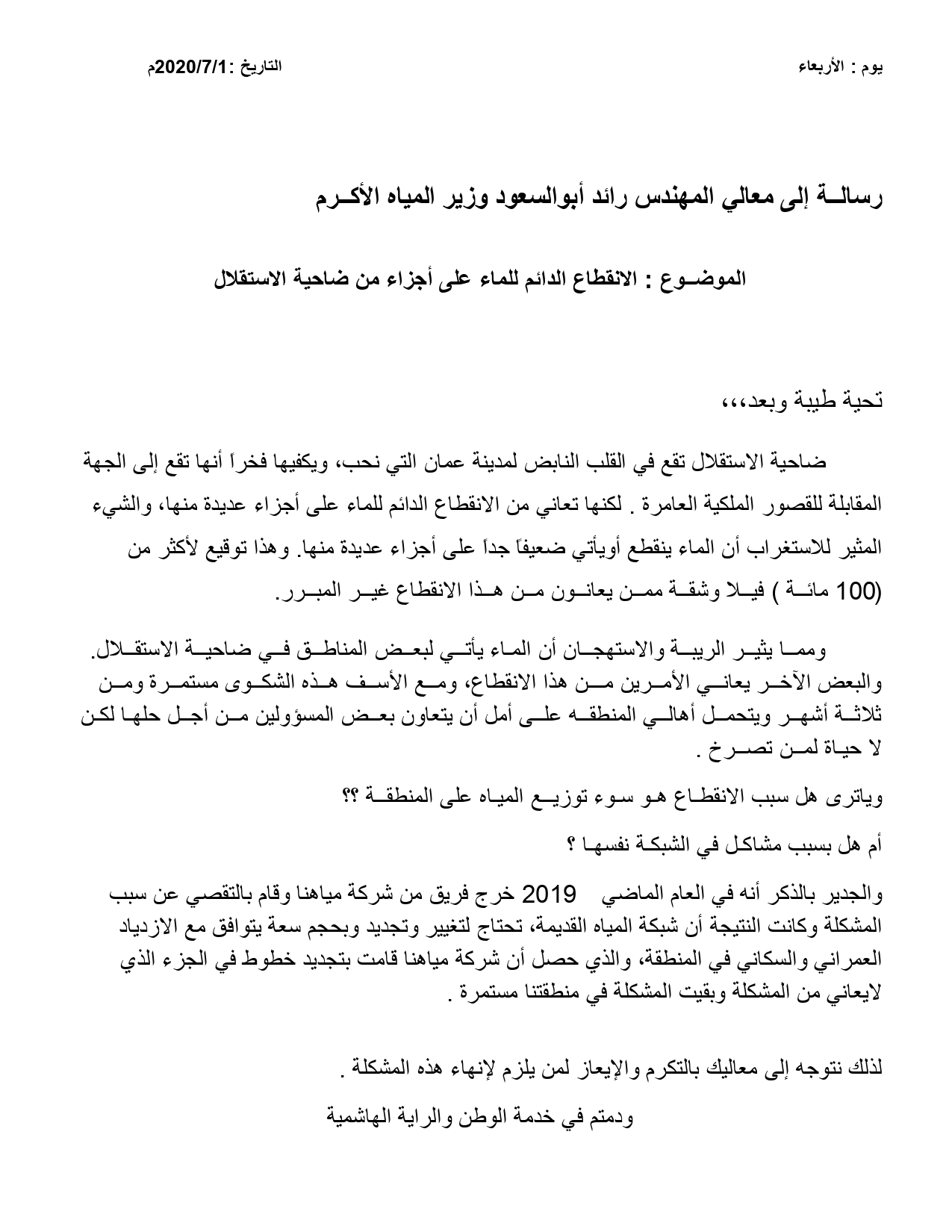 انقطاع المياه في ضاحية الاستقلال منذ 3 أشهر, والوزارة ومياهنا تتذرع كالعادة"