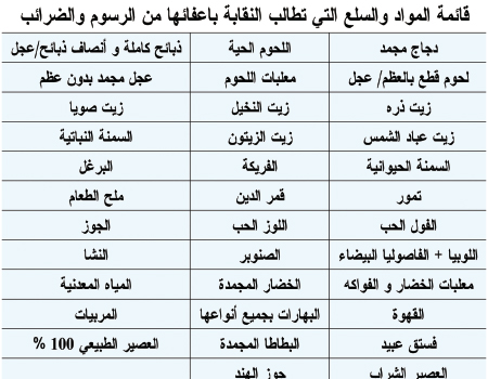 نقابة التجار تطالب بإعفاء المواد الغذائية من الرسوم الضريبية والجمركية