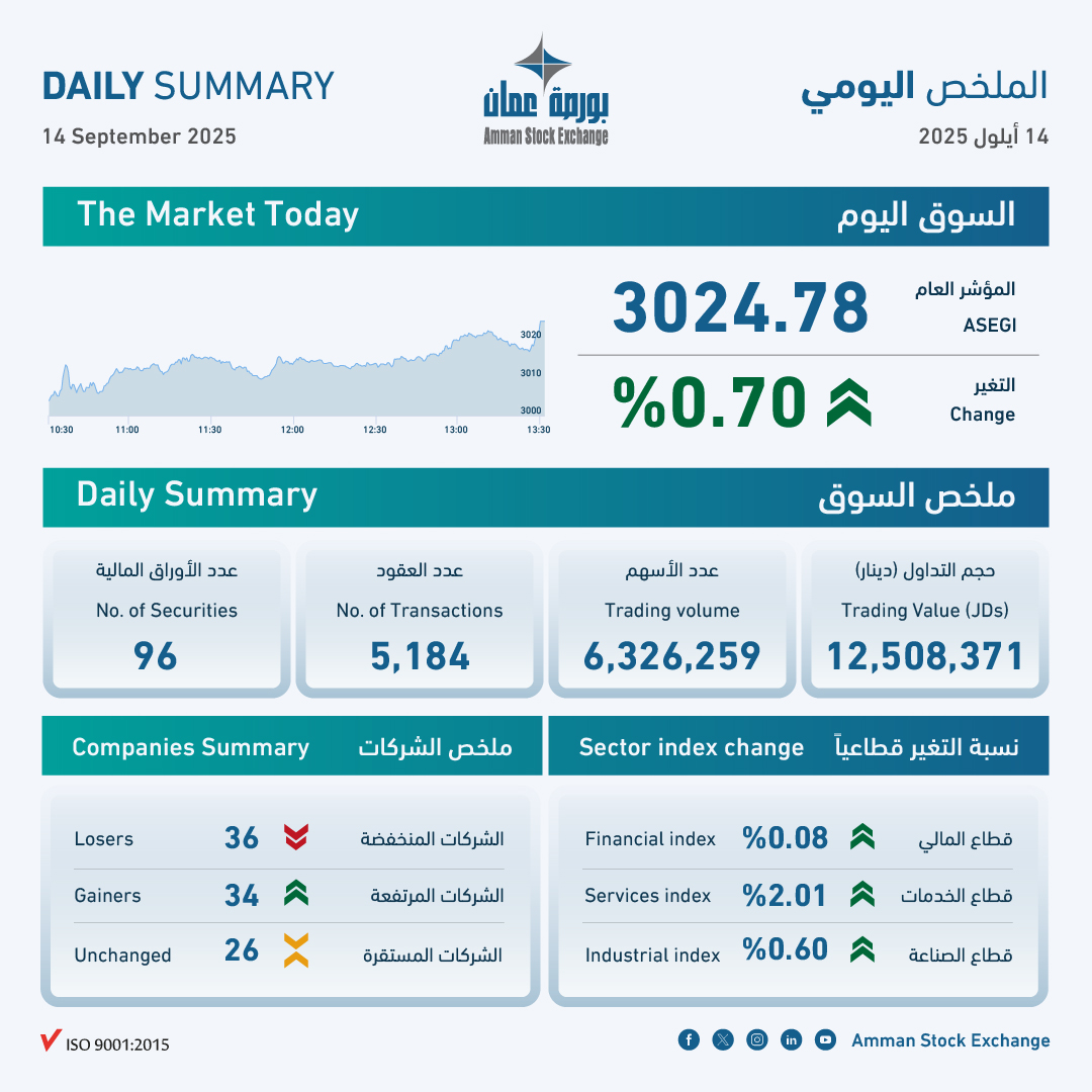 بورصة عمّان تغلق تداولاتها على ارتفاع