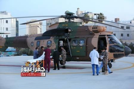 بالصور والفيديو .. نقل حالتين من جنسية اجنبية بطائرة عسكرية الى المستشفى التخصصي