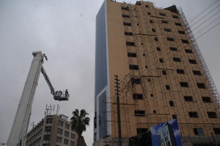 انهيار ثلاث سقالات معدنية بعمارة بجبل الحسين .. صور