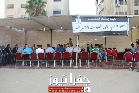 الصحفيون من خيمة اعتصامهم : مستمرون حتى اسقاط قانون المطبوعات ..صور