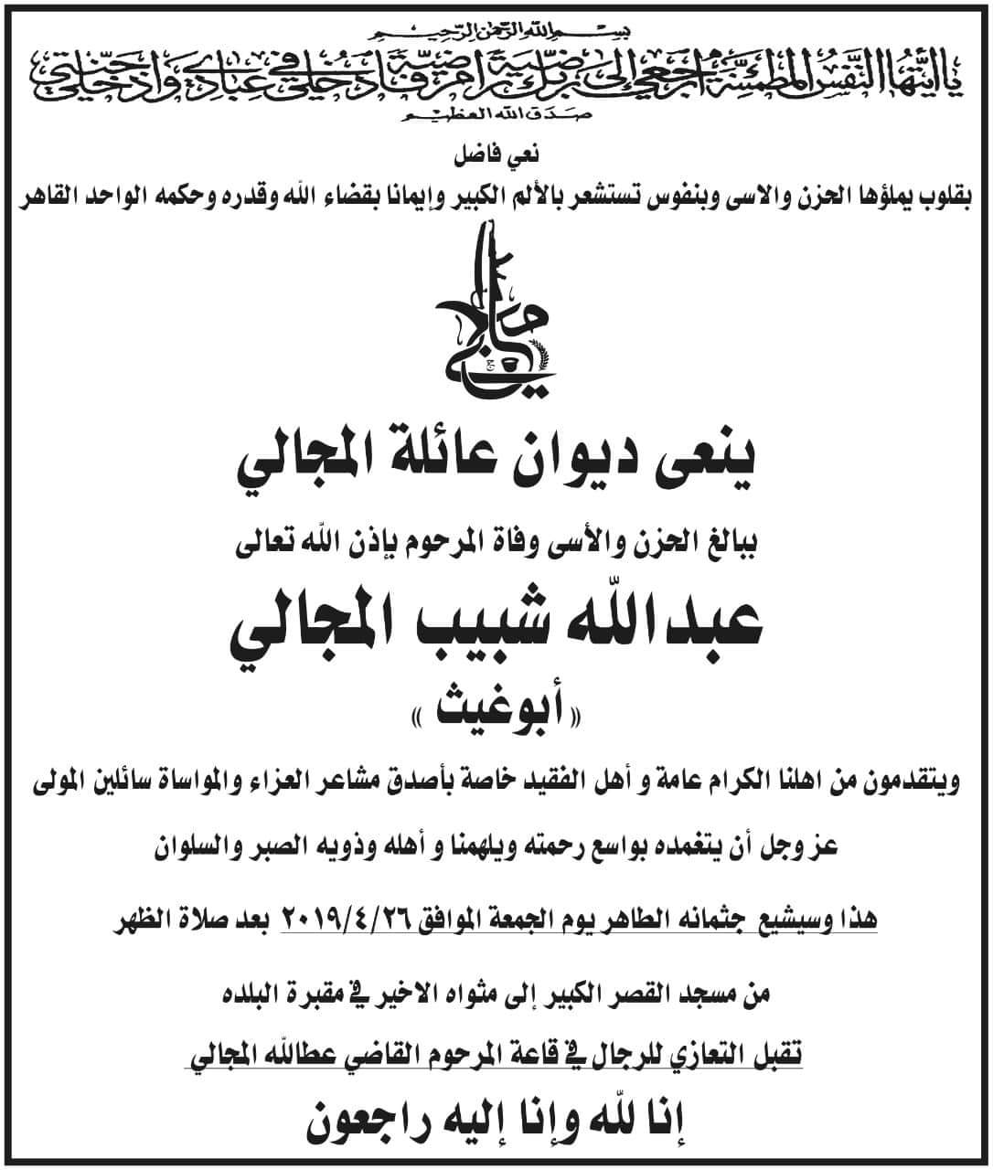 الذكرى السنوية الرابعة لوفاة الحاج ممدوح المصالحه العبادي