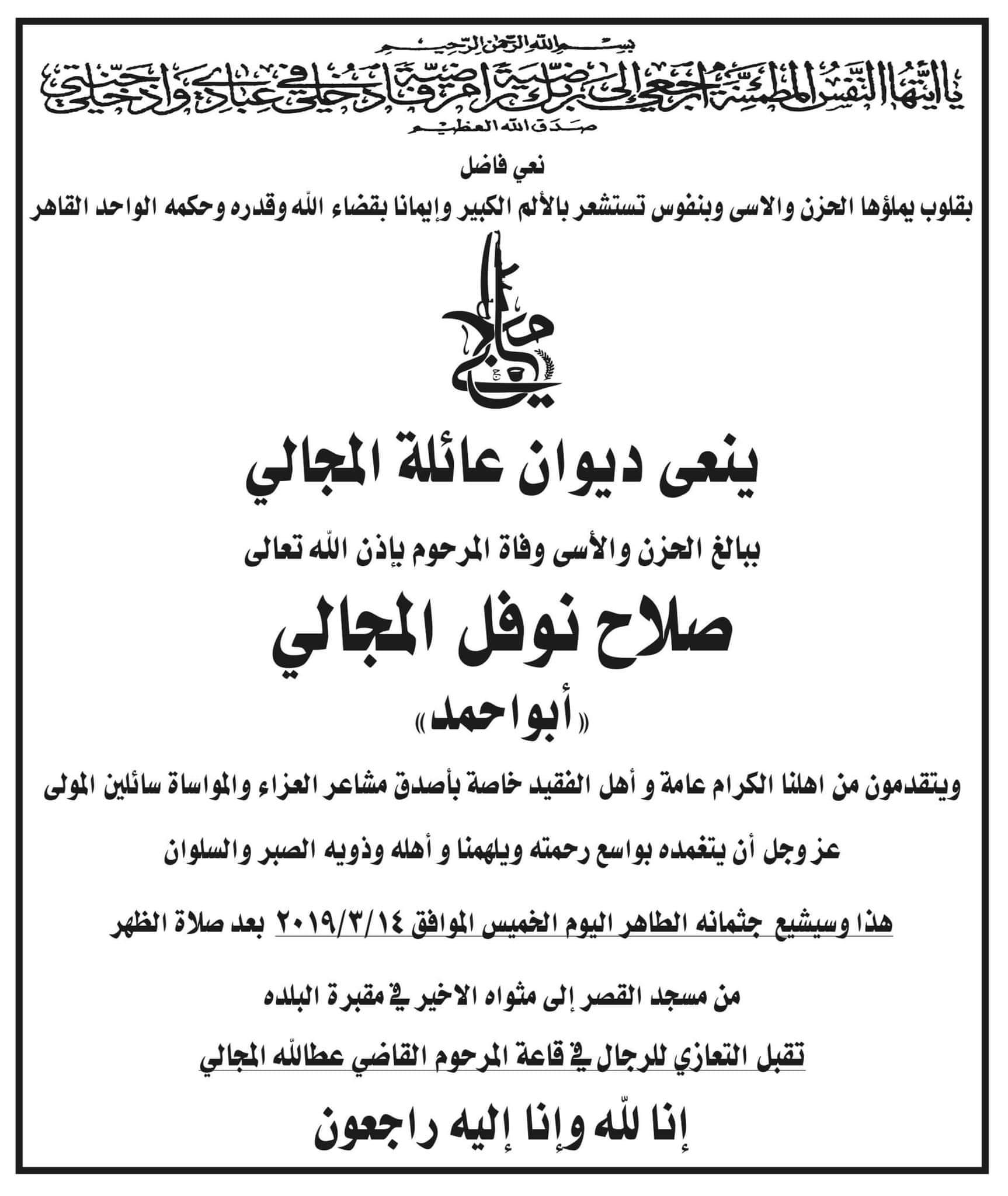 صلاح نوفل المجالي في ذمة الله