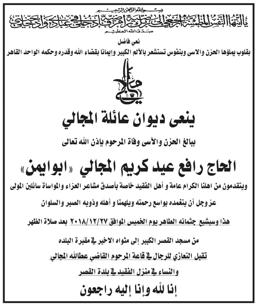 الفاضل رافع عيد كريم المجالي في ذمة الله