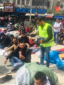 فريق "هاي جين" يقوم بتوزيع معقم الأيدي على المواطنين في وسط البلد - صور