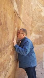 نائب رئيس تحرير صحيفة الأهرام المصرية يقبل صخور البترا شغفا وتقديرا لإنجازات أجداده الأنباط