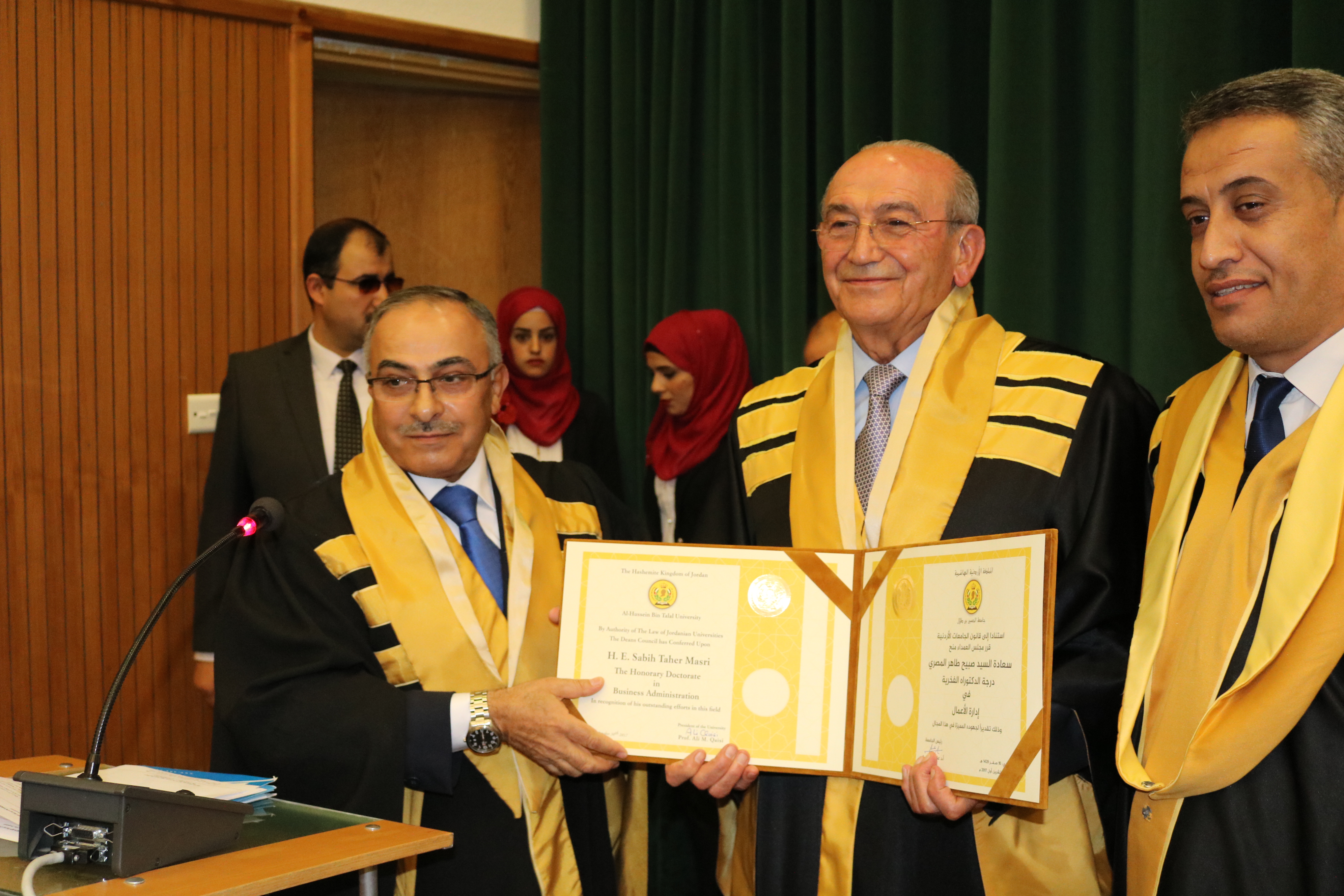 الدكتوراة الفخرية لرجل الأعمال صبيح المصري من جامعة الحسين