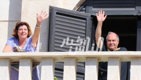 بالصور .. الملقي وزوجته من شرفة منزله يلقي التحية على مسيرة