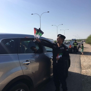 الدوريات الخارجية توزع الاعلام بدلا من المخالفات "صور"