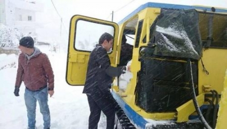 بالصورة .. الدفاع المدني يزف عريسين في كاسحة الثلوج