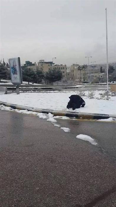 بالصور.. شرطي يؤدي الصلاة على الثلج بعمان (صورة وتعليق)