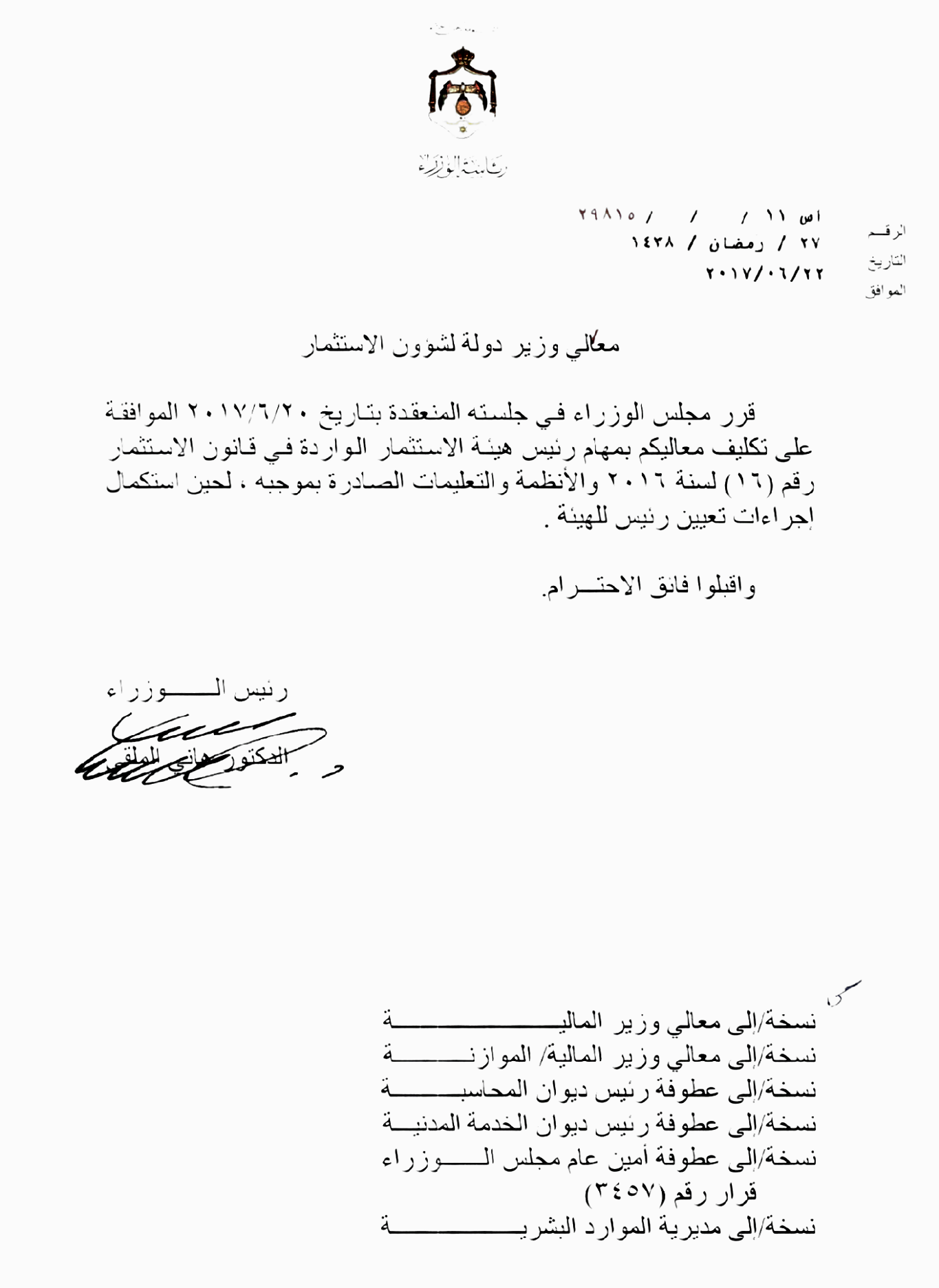 لماذا تتأخر الحكومة بتعيين رئيس جديد لهيئة الاستثمار ؟