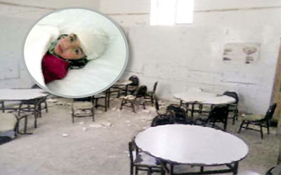 اصابة طالبتين إثر سقوط قصارة السقف بمدرسة سحم الاساسية