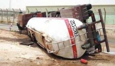 تدهور صهريج محمل بمادة البنزين في الازرق