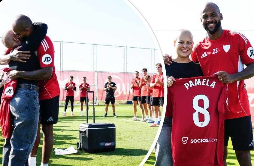 لاعبو إشبيلية يحتفلون بانتصار زوجة زميلهم على المرض (فيديو)